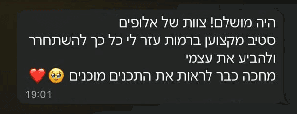 סוף כל סוף הרגשתי שאני יכולה להתמסר, לשחרר אחיזה ופשוט להתמקד בלהיות אני ולהביא את הידע שלי..